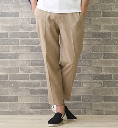 【送料無料】 リネンポリエステル素材で型崩れもしにくく、楽な穿き心地のイージースラックス。股下も短めの設定でスニーカー・サンダルとの相性は抜群です。モデル身長180cm/着用サイズM マイセルフ アバハウス/MYSELF ABAHOUSE MYSELF ABAHOUSE|パンツ|その他